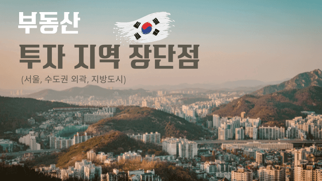 부동산 투자 지역의 장단점에 대해 말씀드리겠습니다. 대한민국에서 부동산 투자 지역은 크게 서울특별시, 수도권 외곽, 지방도시 이렇게 3가지로 나눠집니다. 각 구역별로 투자방법이라던지 자금력 등 장단점이 있습니다. 이번에는 부동산 투자에 있어 지역을 선정할때 주로 고려해야될 부분들 확인해보도록 하겠습니다.